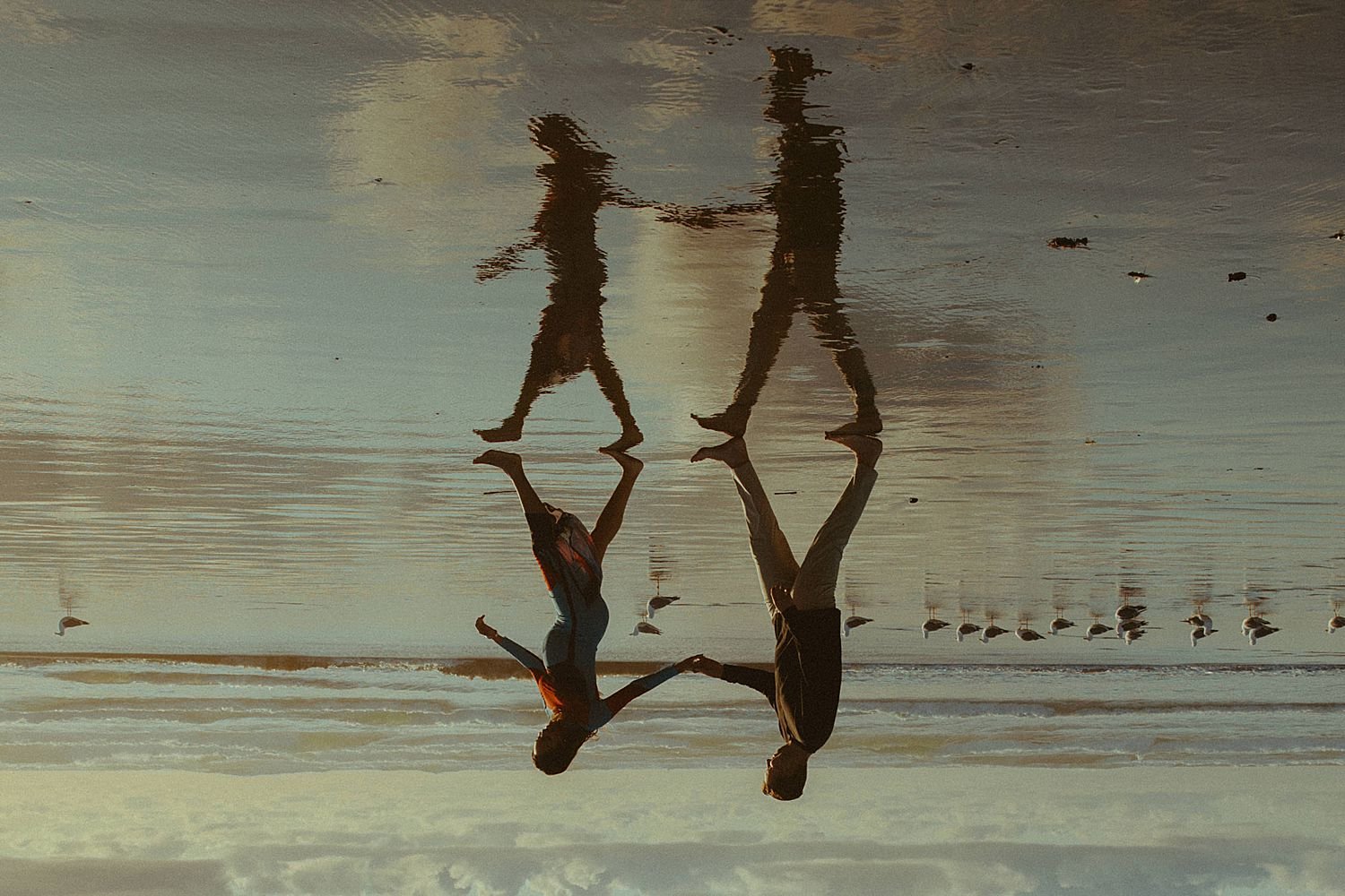 For this shoot, we timed our arrival to give us space to warm up in the early evening light, then positioned ourselves near the waterline as the sun dropped. Sunset timing shifts throughout the year, so planning around golden hour is key—especially if you want that mirror-like surface on the sand.